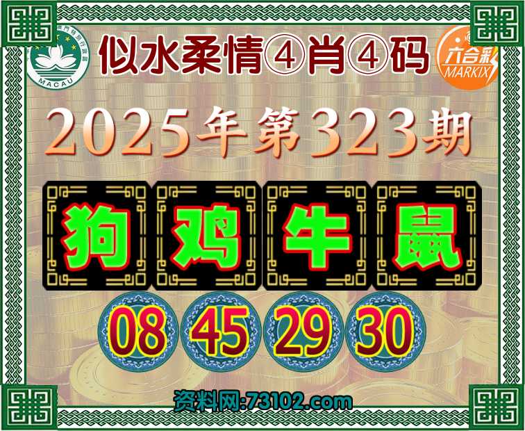 323期:〖似水柔情〗 👈④肖④码👈【狗鸡牛鼠】【08.45.29.30】开:鸡09准彩民验证