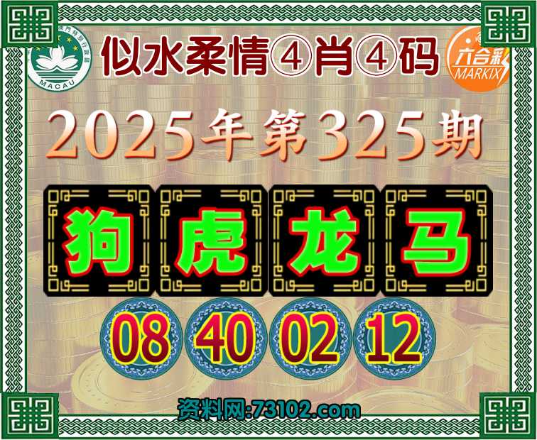325期:〖似水柔情〗 👈④肖④码👈【狗虎龙马】【08.40.02.12】开:虎04准彩民验证