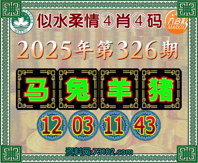 326期:〖似水柔情〗 👈④肖④码👈【马兔羊猪】【12.03.11.43】开:猪19准彩民验证