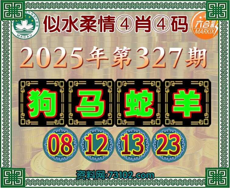 327期:〖似水柔情〗 👈④肖④码👈【狗马蛇羊】【08.12.13.23】开:蛇37准彩民验证