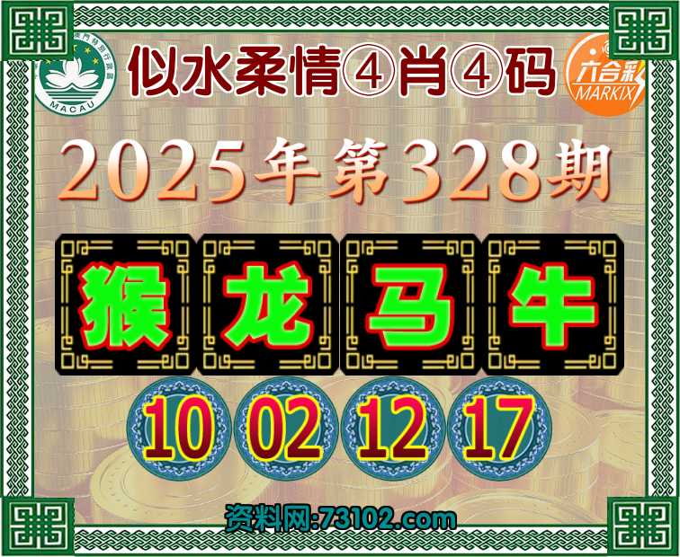 328期:〖似水柔情〗 👈④肖④码👈【猴龙马牛】【10.02.12.17】开:兔03错