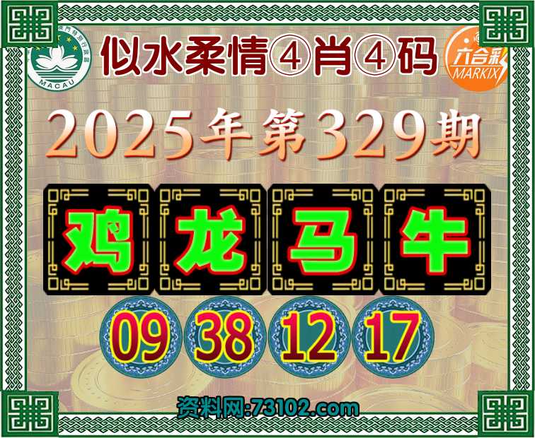 329期:〖似水柔情〗 👈④肖④码👈【鸡龙马牛】【09.38.12.17】开:牛17准彩民验证