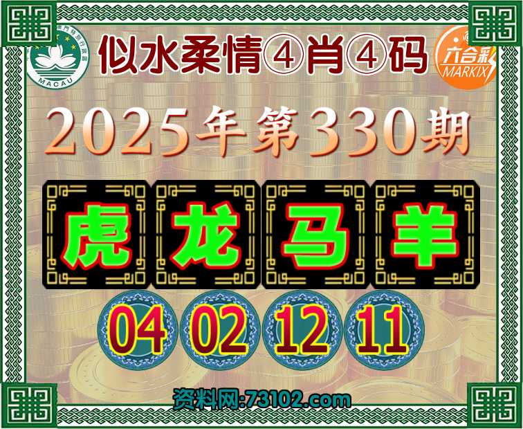 330期:〖似水柔情〗 👈④肖④码👈【虎龙马羊】【04.02.12.11】开:马36准彩民验证