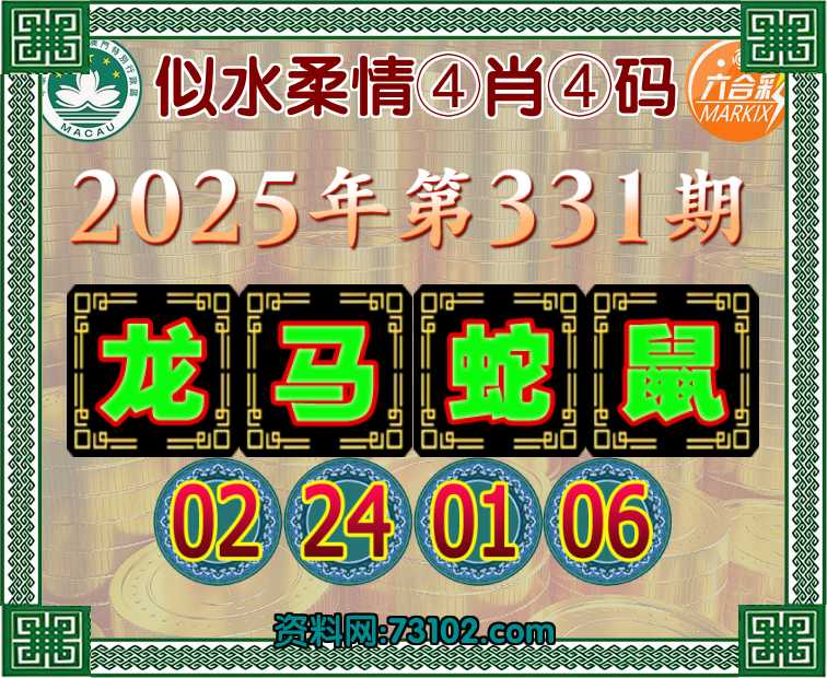 331期:〖似水柔情〗 👈④肖④码👈【龙马蛇鼠】【02.24.01.06】开:龙26准彩民验证