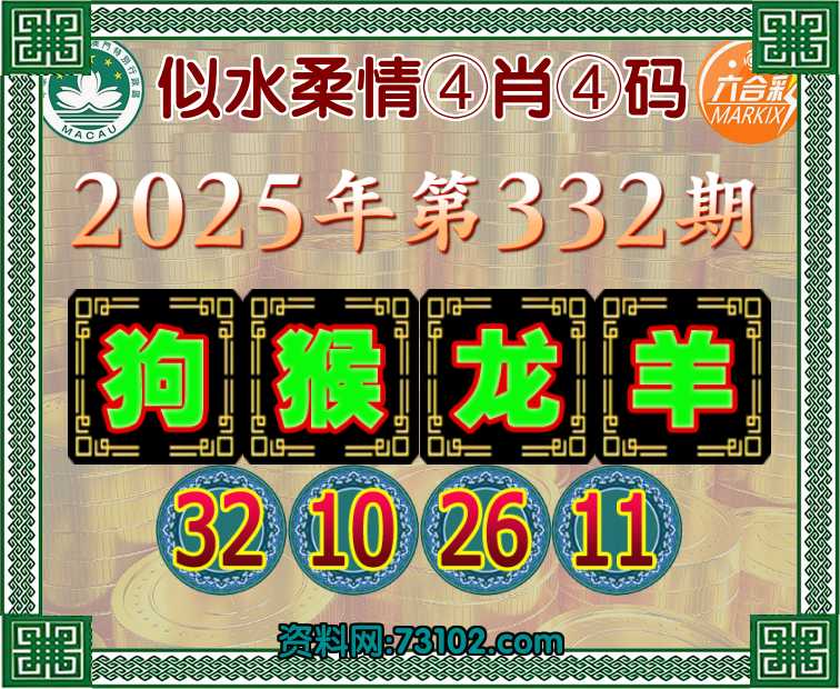 332期:〖似水柔情〗 👈④肖④码👈【狗猴龙羊】【32.10.26.11】开:龙26准彩民验证