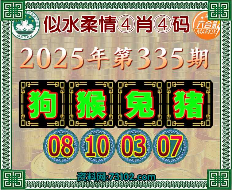 335期:〖似水柔情〗 👈④肖④码👈【狗猴兔猪】【08.10.03.07】开:狗44准彩民验证