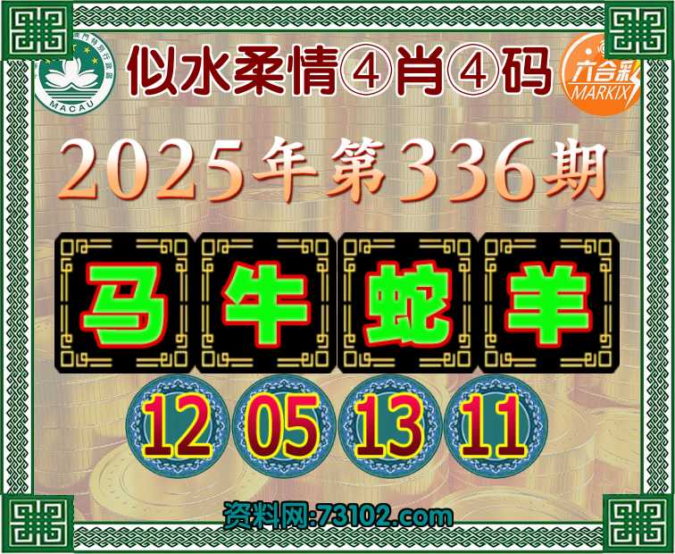 336期:〖似水柔情〗 👈④肖④码👈【马牛蛇羊】【12.05.13.11】开:牛17准彩民验证