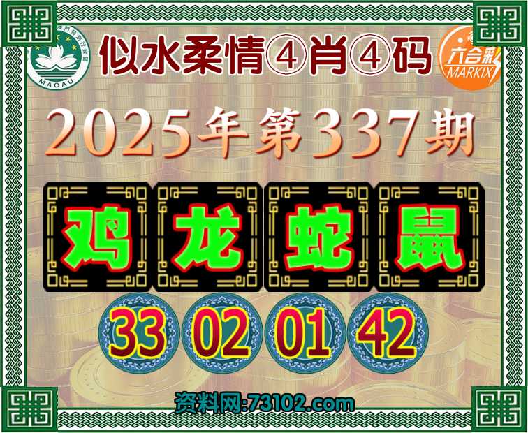 337期:〖似水柔情〗 👈④肖④码👈【鸡龙蛇鼠】【33.02.01.42】开:鸡09准彩民验证