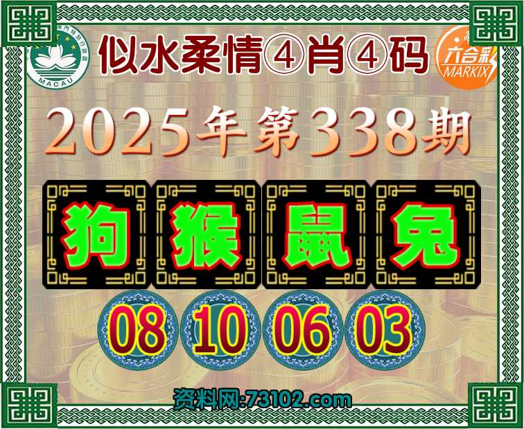 338期:〖似水柔情〗 👈④肖④码👈【狗猴鼠兔】【08.10.06.03】开:狗08准彩民验证